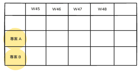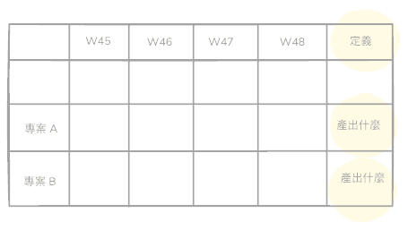 因為當你把專案寫在「列 (Row)」的方向,週數寫在「欄 (Column)」的方向,你就能在每個交叉格子裡填入「這週要做什麼任務」。
